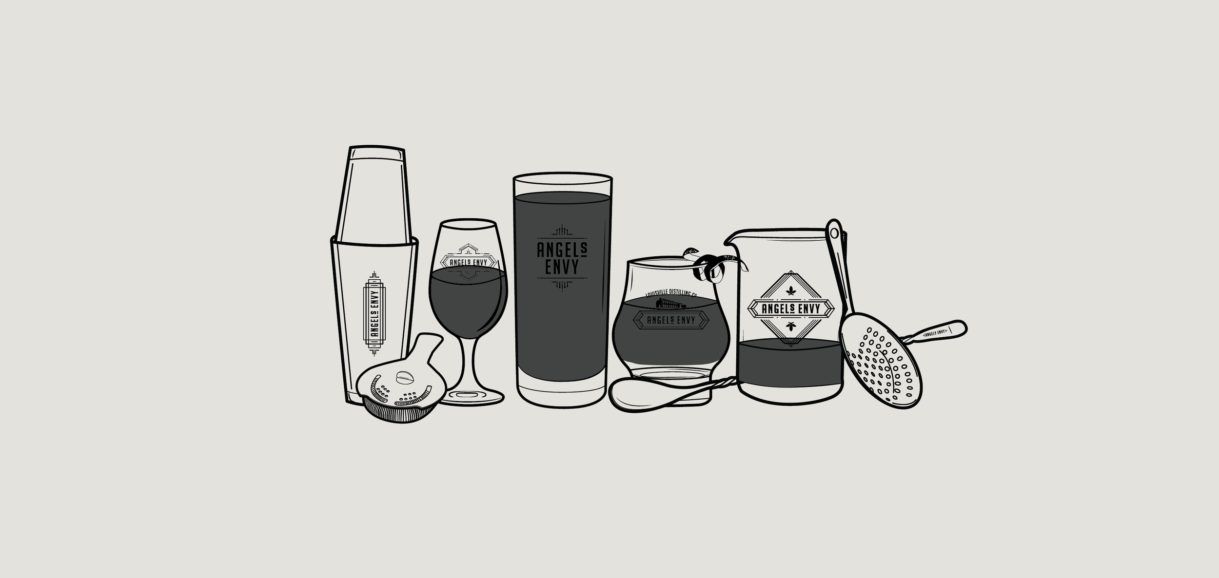 Angel’s Envy’s retail space has turned out several high quality, etched pieces of glassware over the last few years. In addition to helping to develop that glassware, I was also tasked with illustrating the glassware for various purposes (i.e. cocktail cards, retail packaging, etc.).